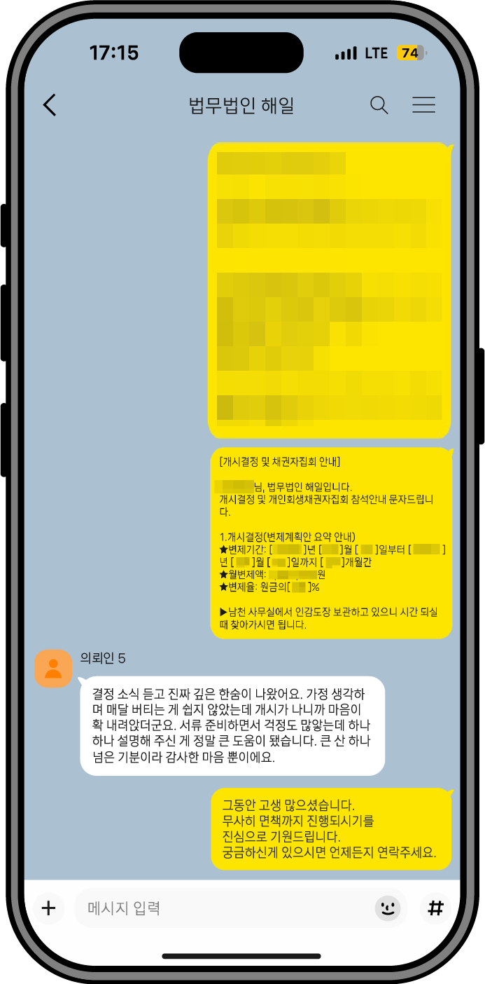회생 과정 전반에서 느끼신 변화와 만족도를 생생한 경험담으로 전달드립니다.